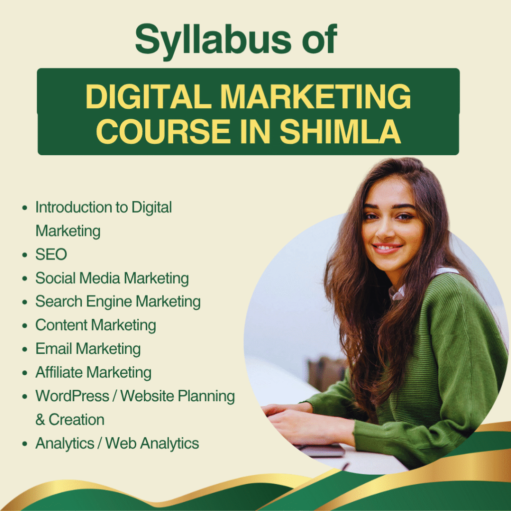 In Digital Marketing course in Shimla we learns about various types of techniques and tools that are used to attract, engage and cover the online audience. Theoretical knowledge and practical skills are both covered in this course because both are impotant to run a successful marketing.