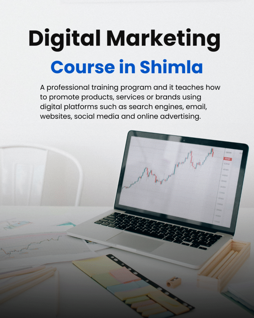 Digital Marketing Course in Shimla is a professional training program and it teaches how to promote products, services or brands using digital platforms such as search engines, email, websites, social media and online advertising. It is helpful for students and professionals also.